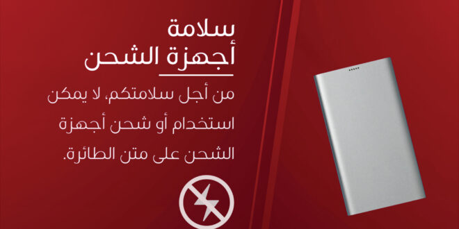 وتشمل لوائح طيران الإمارات الخاصة وحدات شحن الأجهزة المحمولة على متن الطائرة: