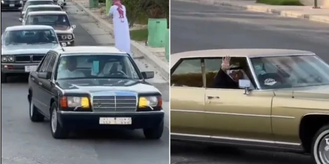 زفاف عريس سعودي في قافلة من السيارات الكلاسيكية.. شاهد