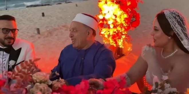 مأذون مصري يمازح عروسين بطريقة مثيرة للجدل.. ويضع الكلابشات الحديدية في أيديهما